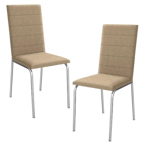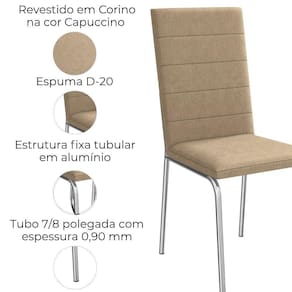 Conjunto 2 cadeiras 2C091, ideais para salas de jantar ou recepções. Estrutura em MDP (15 mm), base/ pés tubular em alumínio (tubo 7/8 polegada com espessura 0,90 mm). Estofadas com espuma D20 e revestido em Corino (material sintético que imita couro) garantindo conforto, durabilidade e fácil limpeza. Possui sapatas para proteção ao piso. Este produto será entregue em 01 volume.