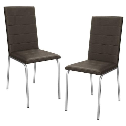 Conjunto 2 cadeiras 2C091, ideais para salas de jantar ou recepções. Estrutura em MDP (15 mm), base/ pés tubular em alumínio (tubo 7/8 polegada com espessura 0,90 mm). Estofadas com espuma D20 e revestido em Corino (material sintético que imita couro) garantindo conforto, durabilidade e fácil limpeza. Possui sapatas para proteção ao piso. Este produto será entregue em 01 volume.