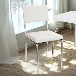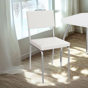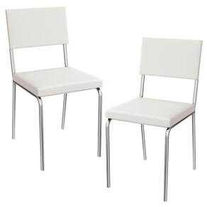 Conjunto 2 cadeiras 2C128, ideais para salas de jantar ou recepções. Estrutura em MDP (15 mm), corpo/pés tubular em alumínio (Tubo 7/8 com parede de espessura 0,90mm). Estofadas com espuma D20 e revestidas em Corino (material sintético que imita couro), além de sapatas para proteção ao piso. Este produto será entregue em 01 volume.