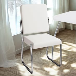 Conjunto 2 cadeiras 2C139, ideais para salas de jantar ou recepções. Estrutura em MDP (15 mm), base/ pés tubular em alumínio (tubo 1 polegada com espessura 0,90 mm). Estofadas com espuma D26 e revestido em Corino (material sintético que imita couro) garantindo conforto, durabilidade e fácil limpeza. Possui sapatas para proteção ao piso. Este produto será entregue em 01 volume.