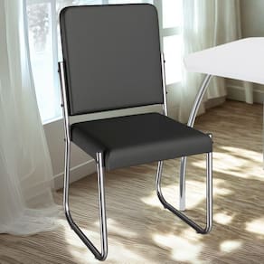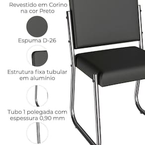 Conjunto 2 cadeiras 2C139, ideais para salas de jantar ou recepções. Estrutura em MDP (15 mm), base/ pés tubular em alumínio (tubo 1 polegada com espessura 0,90 mm). Estofadas com espuma D26 e revestido em Corino (material sintético que imita couro) garantindo conforto, durabilidade e fácil limpeza. Possui sapatas para proteção ao piso. Este produto será entregue em 01 volume.