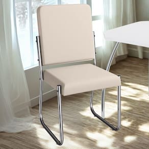 Conjunto 2 cadeiras 2C139, ideais para salas de jantar ou recepções. Estrutura em MDP (15 mm), base/ pés tubular em alumínio (tubo 1 polegada com espessura 0,90 mm). Estofadas com espuma D26 e revestido em Corino (material sintético que imita couro) garantindo conforto, durabilidade e fácil limpeza. Possui sapatas para proteção ao piso. Este produto será entregue em 01 volume.