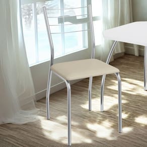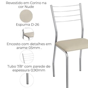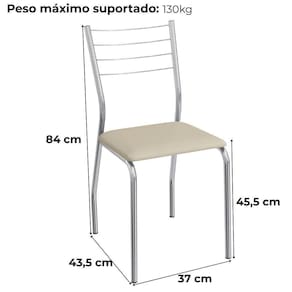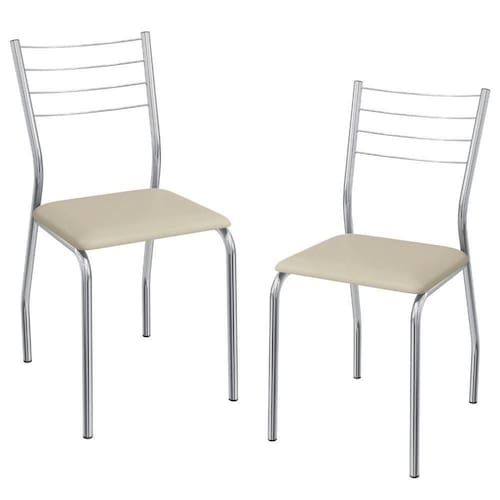 Conjunto 2 cadeiras 2C140, ideais para salas de jantar ou recepções. Estrutura em MDP (15 mm), corpo/ pés tubular em alumínio (Tubo 7/8 com parede de espessura 0,90mm), encosto com detalhes em arame 0,5mm. Estofadas com espuma D26 e revestido em Corino (material sintético que imita couro), além de sapatas para proteção ao piso. Este produto será entregue em 01 volume.