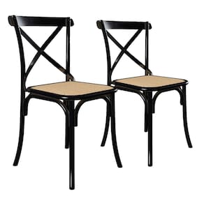Kit 2 Cadeiras Cross Katrina Jantar Preta Assento Corano Bege Aço