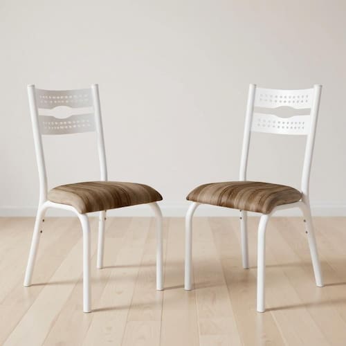 Altura: 91 cm | Quantidade de caixas de embalagem: 1 | Forma: Cadeiras | Material da tampa: Madeira | Marca: Repleta | Ambiente recomendado: Sala de jantar | Inclui manual de montagem: Sim | Requer montagem: Sim | Modelo: Luna | Fabricante: Repleta | Número do modelo: N/A | Principais Características do Produto 1: Design Moderno e Anatômico: formato contemporâneo que garante conforto e estilo, valorizando qualquer ambiente. | Exige montagem: Sim | Principais Características do Produto 2: Material Resistente: produzidas em aço carbono de alta densidade, com estrutura firme e durável. | Baterias são necessárias?: Não | Certificação de teste externa: Sim | Is Fragile: Sim | Número de caixas: 1 | Principais Características do Produto 0: Largura: 37 cm; Profundidade: 47 cm; Altura: 91 cm | Número da peça: N/A | Peso do item: 17,37 | Cor: Branco | Palavras-chave de Pesquisa: Cadeiras | Componentes incluídos: Almofada | Quantidade de itens: 1 | Dimensões do item P x L x A: Largura: 37 cm; Profundidade: 47 cm; Altura: 91 cm | Largura do assento: 37 cm | Quantidade de cadeiras por conjunto: 2 | Profundidade do assento: 47 cm | Altura da cadeira: 91 cm | Cor: Branco e Capuccino