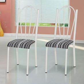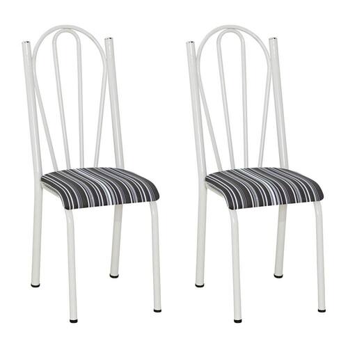 Kit 2 Cadeiras de Cozinha Alasca Estampado Listrado Pés de Ferro Branco - Pallazio