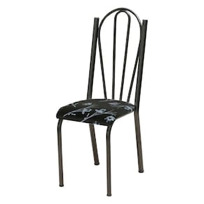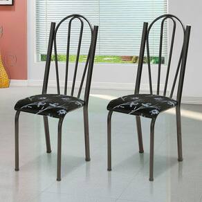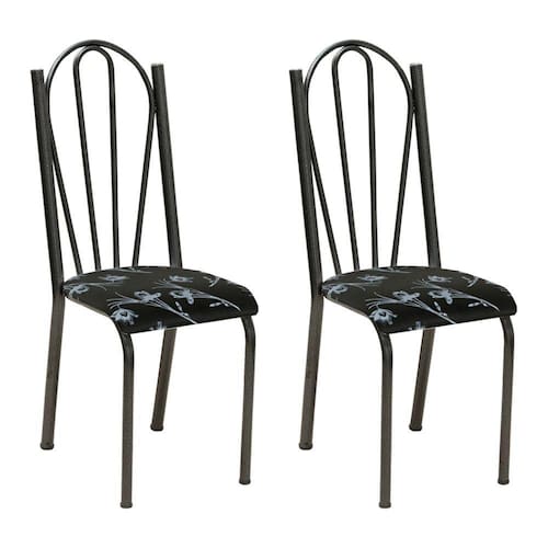 Kit 2 Cadeiras de Cozinha Alasca Estampado Preto Florido Pés de Ferro Cromo Preto - Pallazio