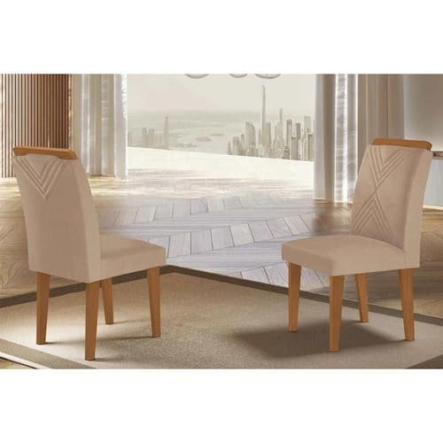 Kit 2 Cadeiras de Cozinha Amsterdã 2 Un Madeira Capuccino/Linho Bege Turim - Rufato - Blush