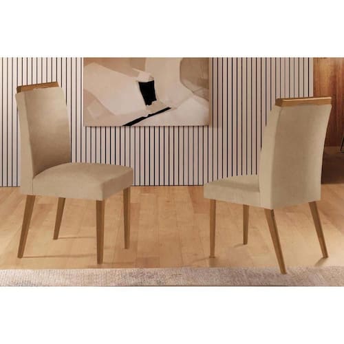 Kit 2 Cadeiras de Cozinha Athenas 2 Un Madeira Capuccino/Linho Bege Turim - Rufato - Blush