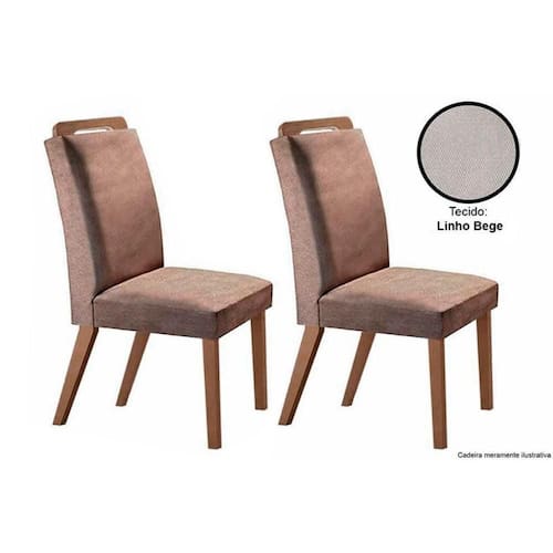 Kit 2 Cadeiras de Cozinha Athenas 2 Un Madeira Capuccino/Linho Bege Turim - Rufato - Blush