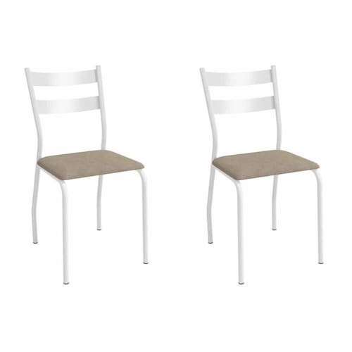 Kit 2 Cadeiras De Cozinha Bali 2c141br Aço 2 Un Branco/linho Bege Fendi - Kappesberg