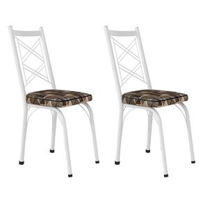 Kit 2 Cadeiras de Cozinha Delaware Estampado Mosaico Palha Pés de Ferro Branco - Pallazio