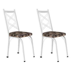 Kit 2 Cadeiras De Cozinha Delaware Estampado Mosaico Palha Pés De Ferro Branco - Pallazio