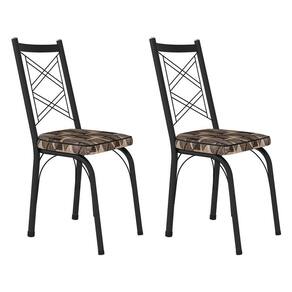 Kit 2 Cadeiras De Cozinha Delaware Estampado Mosaico Palha Pés De Ferro Preto - Pallazio