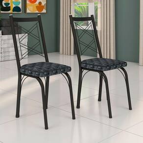 Kit 2 Cadeiras de Cozinha Delaware Estampado Mosaico Silver Pés de Ferro Preto - Pallazio
