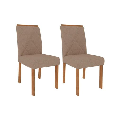 Kit 2 Cadeiras de Cozinha Fernanda Wood 2 Un Madeirado/ Linho Bege - Cimol - Blush