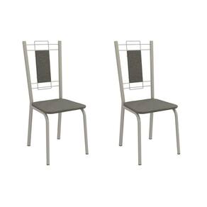 Kit 2 Cadeiras De Cozinha Florença 2c005nk Aço 2 Un Niquel/linho Escuro - Kappesberg