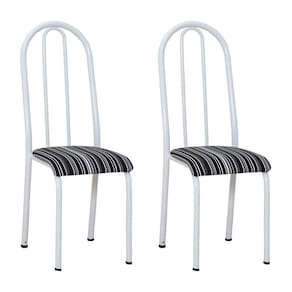 Kit 2 Cadeiras De Cozinha Flórida Estampado Preto Listrado Pés De Ferro Branco - Pallazio