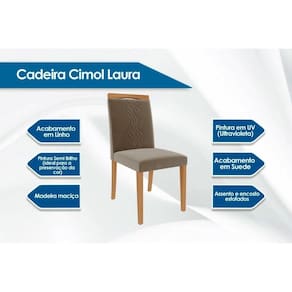 Cadeira Sala de Jantar Laura Madeira Kit 2 Un Madeirado/Suede Joli Capuccino - Cimol