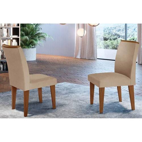Kit 2 Cadeiras de Cozinha Lunara 2 Un Imbuia-Capuccino/Linho Bege Turim - Rufato - Blush