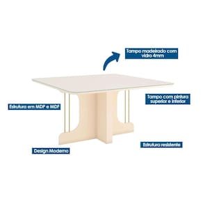 Mesa de Sala Jantar Mavi SC102 c/ Tampo Madeirado c/ Vidro Curvo 150x150cm Off White - Henn