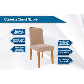 Cadeira Sala de Jantar Nicole Kit 2 Un Savana-Nature/Suede Nude Bege - Cimol