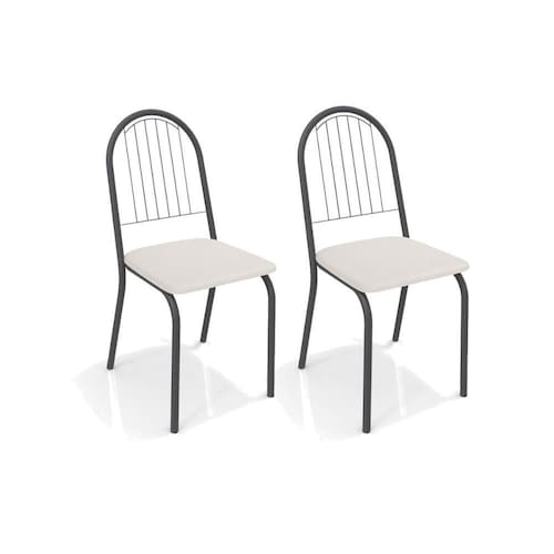 Cadeira Sala de Jantar Noruega 2C077PRF Aço Kit 2 Uni Preto Fosco/Courano Branco - Kappesberg