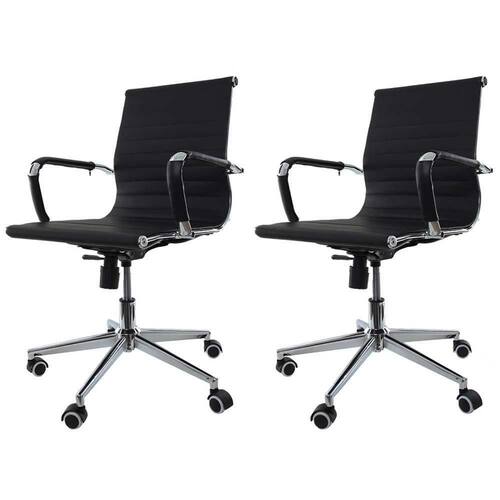 Kit 2 Cadeira Para Escritório Com Braço Base Cromada Rodinhas Resistente Confortável e Barata Tipo Diretor Secretária Para 120kg Stripes Esteirinha Charles Eames Eiffel