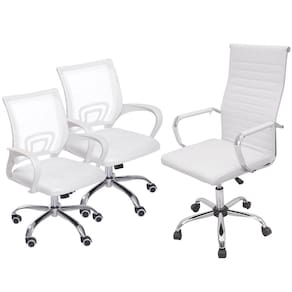 Kit 2 Cadeiras De Escritório Presidente Executiva Alta Confortável Esteirinha Para 120 Kg Branco