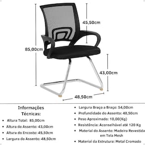 A Cadeira de Escritório Secretária possui o diferencial de ser confeccionada com materiais de alta qualidade, seu assento é feito em madeira compensada revestida com tecido, sua estrutura é confeccionada em metal, materiais que garantem alta qualidade e durabilidade ao produto