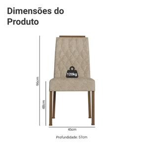 O estofado em tecido Suede Imperial, na tonalidade bege, proporciona um visual suave, ideal para quem busca um ambiente mais sofisticado. A espuma de alta densidade proporciona conforto, tornando cada cadeira uma escolha perfeita para quem valoriza estilo e bem-estar.