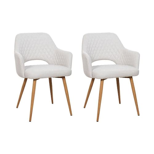 AS IMAGENS SÃO MERAMENTE ILUSTRATIVAS E PODEM SOFRER VARIAÇÕES DE COR E PEQUENOS DETALHES DE ACORDO COM O SEU MONITOR, ILUMINAÇÃO DO AMBIENTE E ATÉ MESMO A SUA PERCEPÇÃO 2 Cadeiras de Jantar Dakota Estrutura AÃo Carbono Laminado Natural com Estofado Linho Cru