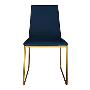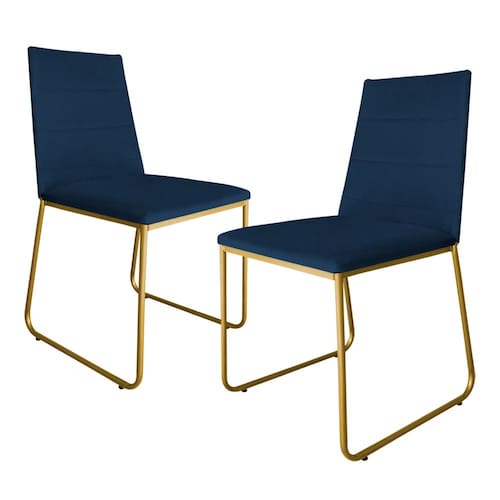Kit 2 Cadeiras de Jantar Estofada Lille Base Gold Veludo Azul Marinho - Montanaris Decor