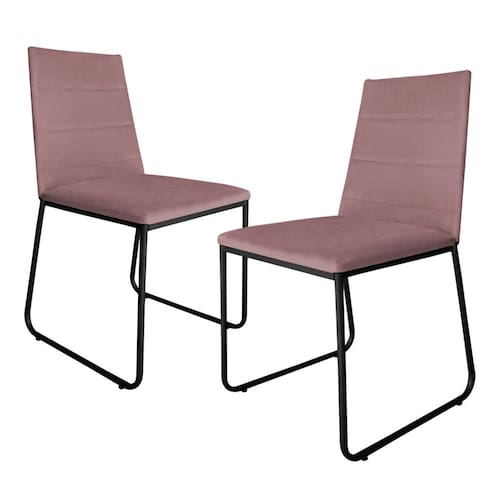 Kit 2 Cadeiras de Jantar Estofada Lille Base Preta Veludo Rosê - Montanaris Decor
