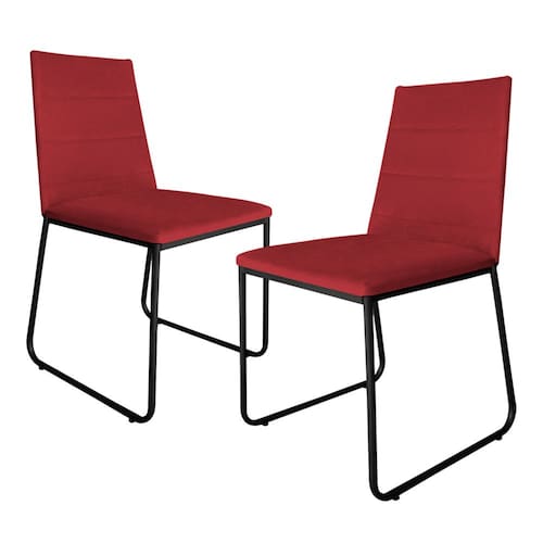 Kit 2 Cadeiras de Jantar Estofada Lille Base Preta Veludo Vermelho - Montanaris Decor