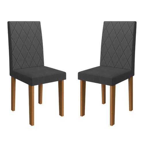 Diferenciais: - Estilo moderno com design elegante e encosto bordado nos 2 lados, que valoriza o ambiente. - Conforto garantido: encosto e assento estofados e revestidos em tecido suede macio ao toque. - Estrutura resistente: pés em MDF 25mm com acabamento fosco. - Proteção extra: sapatas plásticas antiumidade que aumentam a durabilidade. - Alta capacidade de peso: cada cadeira suporta até 120kg.