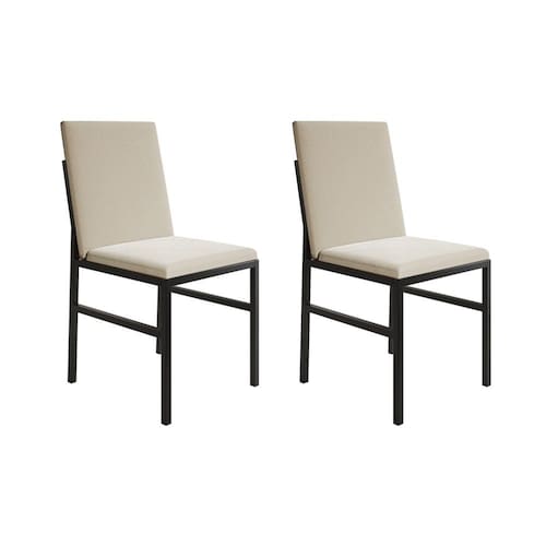 Kit 2 Cadeiras de Jantar Estofadas Mônaco Veludo Bege - Preto