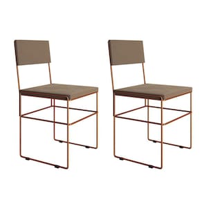 Kit 2 Cadeiras De Jantar Estofadas Veludo Bege Base Cobre Vitoria - Cor: Marrom