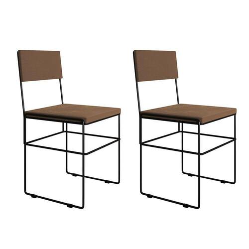 Kit 2 Cadeiras De Jantar Estofadas Veludo Marrom Aço Preto Vitoria - Cor: Preto