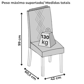 Peso máximo suportado: 130Kg (acento)