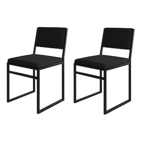 IMAGENS MERAMENTE ILUSTRATIVAS REALIZADO EDIÇÃO, PODENDO HAVER UMA PEQUENA VARIAÇÃO DE COR DEPENDENDO DE CADA TELA OU MONITOR.Kit 2 Cadeiras De Jantar Industrial Assento Estofado Veludo Preto Isa - Iron Wood