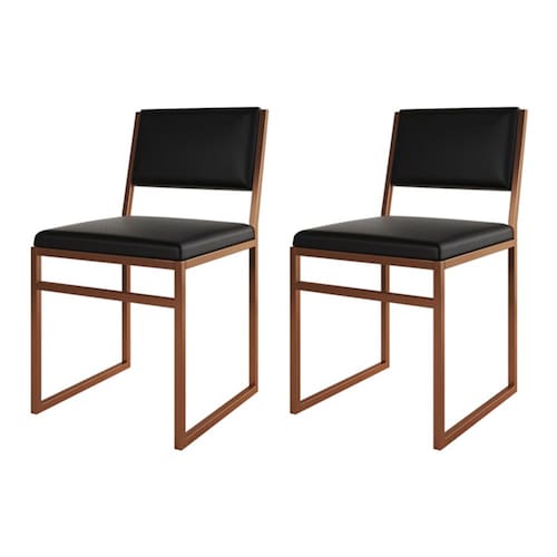Kit 2 Cadeiras De Jantar Industrial Isa Assento Corino Preto Base Cobre