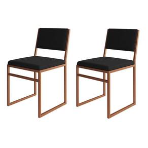 IMAGENS MERAMENTE ILUSTRATIVAS REALIZADO EDIÇÃO, PODENDO HAVER UMA PEQUENA VARIAÇÃO DE COR DEPENDENDO DE CADA TELA OU MONITOR.Kit 2 Cadeiras De Jantar Industrial Isa Assento Estofado Veludo Preto Base Cobre