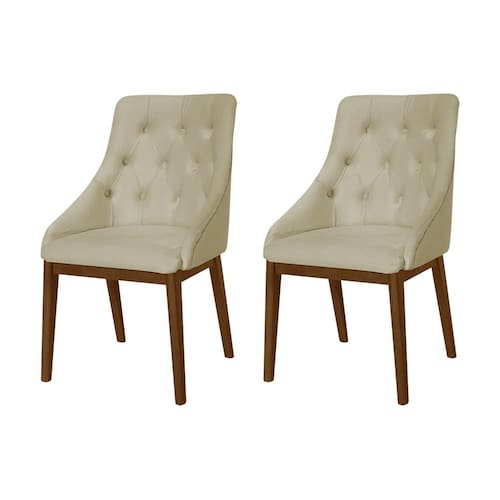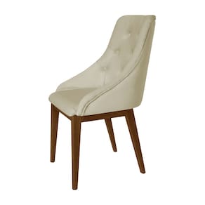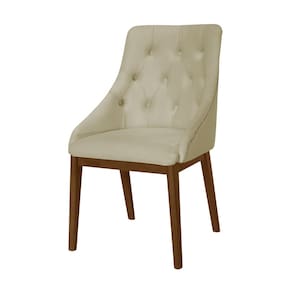 Kit 2 Cadeiras de Jantar Luxo Estofada Elisa Anatômica Capitonê Veludo Bege Base Madeira Maciça Imbu