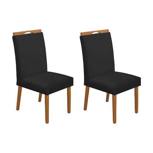 Kit 2 Cadeiras de Jantar Madeira Maciça Cerejeira Premium Heloísa Veludo Preto - Preto