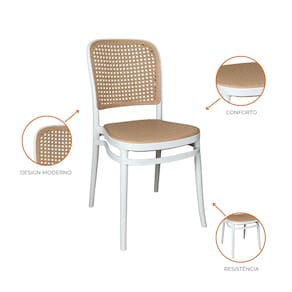 Produzida 100% em polipropileno de alta qualidade, a cadeira oferece excelente resistência e durabilidade. Com peso aproximado de 5?kg, suporta até 120?kg e contribui para um ambiente agradável e funcional.
