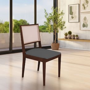 Kit 2 Cadeiras de Jantar Suellen em Madeira e Mdf Castanho Linho Cinza Grafite