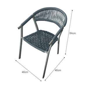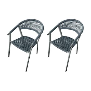 Kit 2 Cadeiras Decorativa Joana Em Corda Náutica E Base Em Alumínio Cinza-cinza - Cor: Cinza