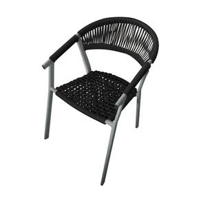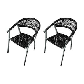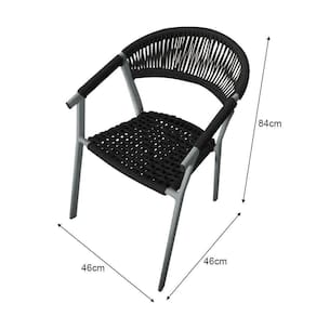 Kit 2 Cadeiras Decorativa Joana Em Corda Náutica E Base Em Alumínio Cinza/preta - Cor: Preto