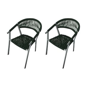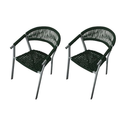 Kit 2 Cadeiras Decorativa Joana Em Corda Náutica E Base Em Alumínio Cinza/verde Musgo - Cor: Verde